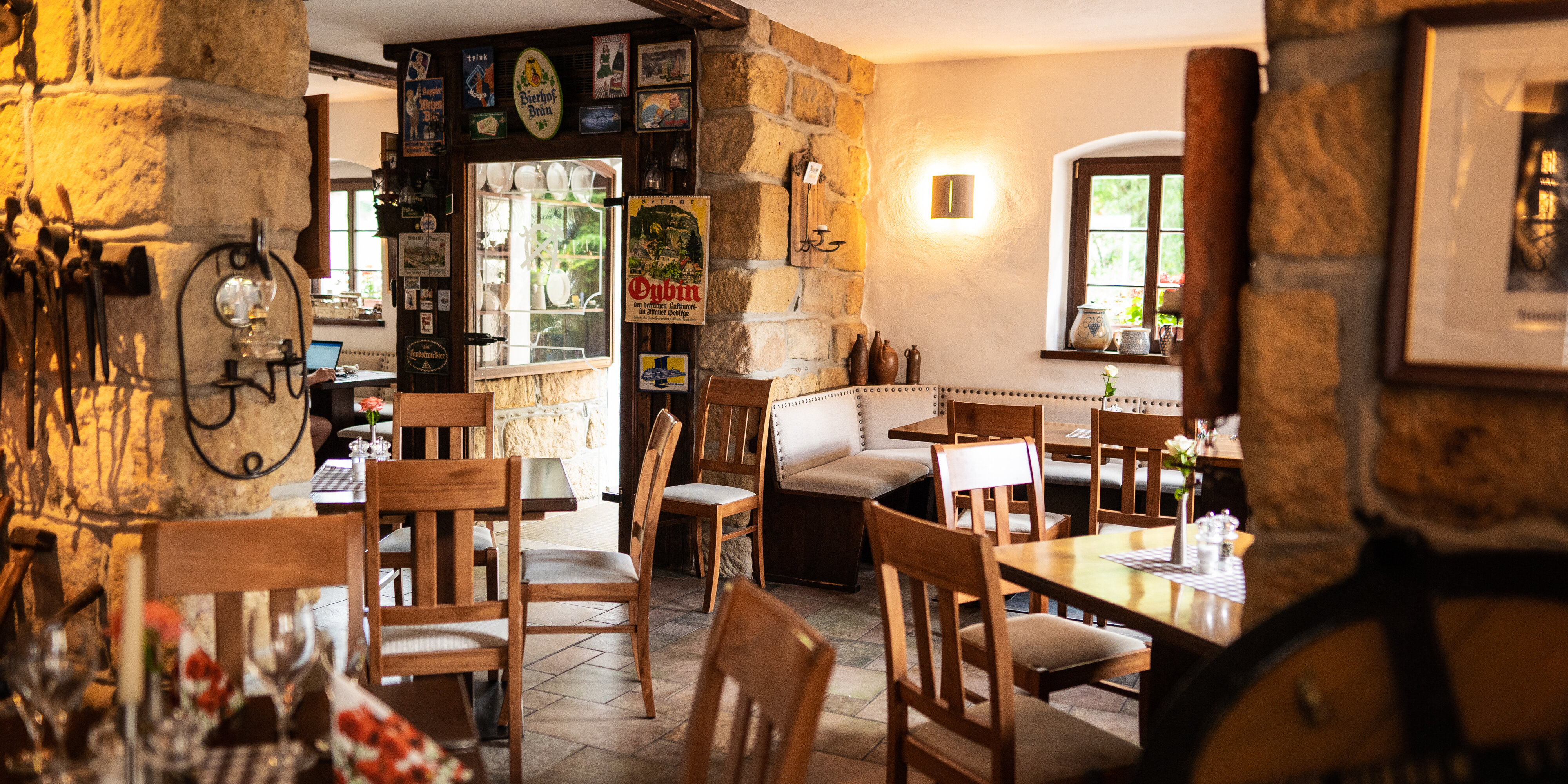 Der gesamte Restaurantbereich (40 Plätze), der Biergarten (40 Plätze) und die sanitären Räume, befinden sich auf einer Ebene und sind frei von Stufen und sonstigen Hindernissen.